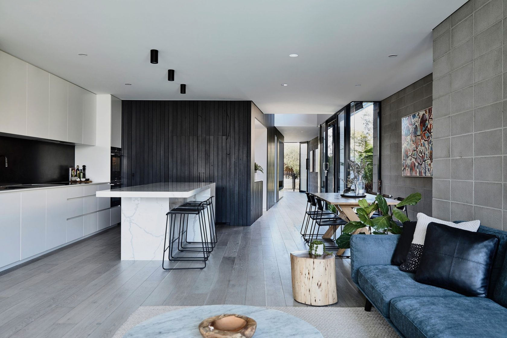 ровная геометрия, чёткие углы, визуально, создается впечатление, что потолок парит в